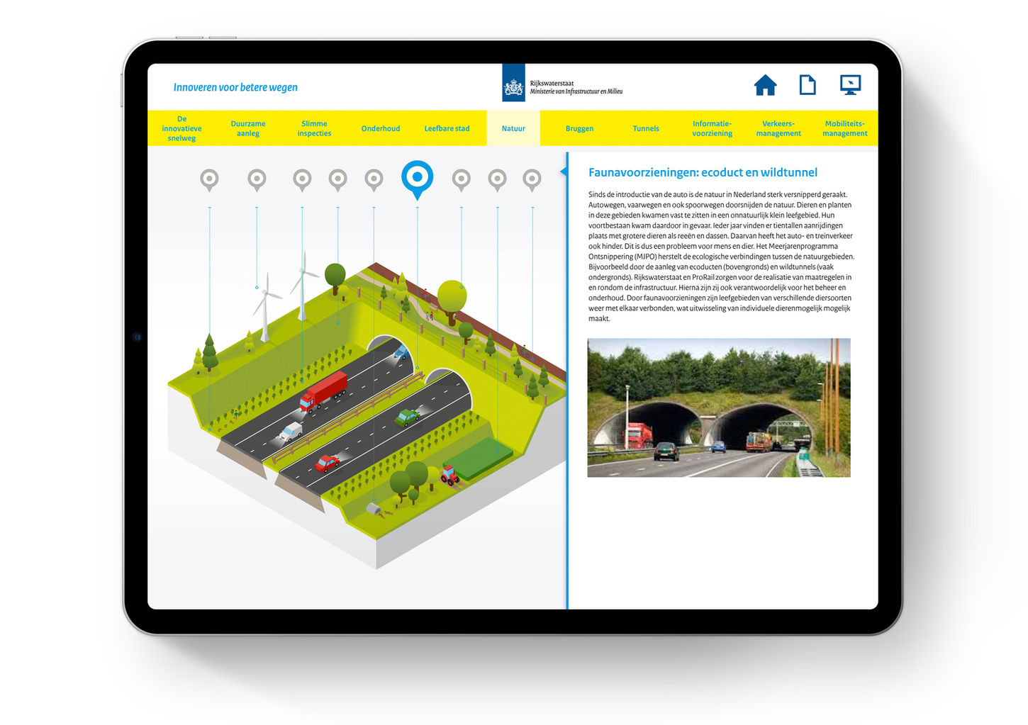 Serie illustraties gebruikt in een interactieve PDF en z-card met uitleg over ruim 70 duurzame innovaties voor betere wegen.
